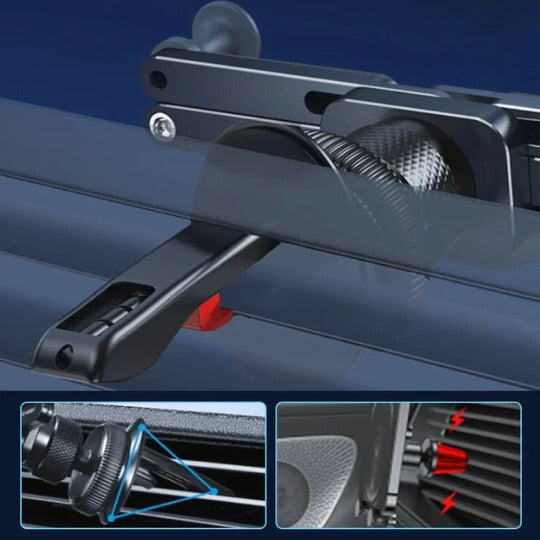 Fastgør din smartphone sikkert på ventilationsgitteret i din bil med denne smarte støtte, der har 360° rotation og automatisk lås. Ideel til sikker brug under kørsel.